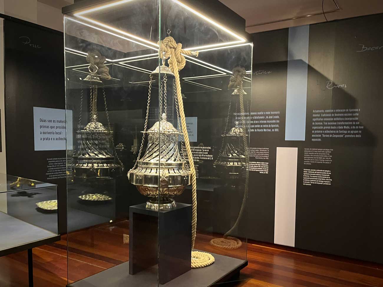 La orfebrería compostelana ha estado tradicionalmente ligada al culto religioso, creando piezas únicas con metales nobles y piedras preciosas tanto para la Iglesia como para los devotos, algunas de ellas de gran valor artístico e histórico. También destaca la producción para la sociedad civil de piezas religiosas y otras más prosaicas.